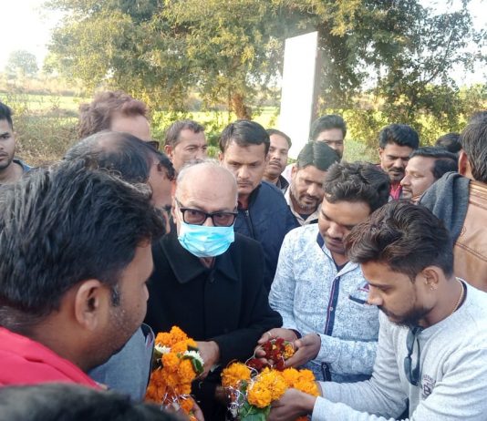 बांदकपुर मे भाजपा के युवा मोर्चा जिला अध्यक्ष भारत यादव का फूल मालाओं से...